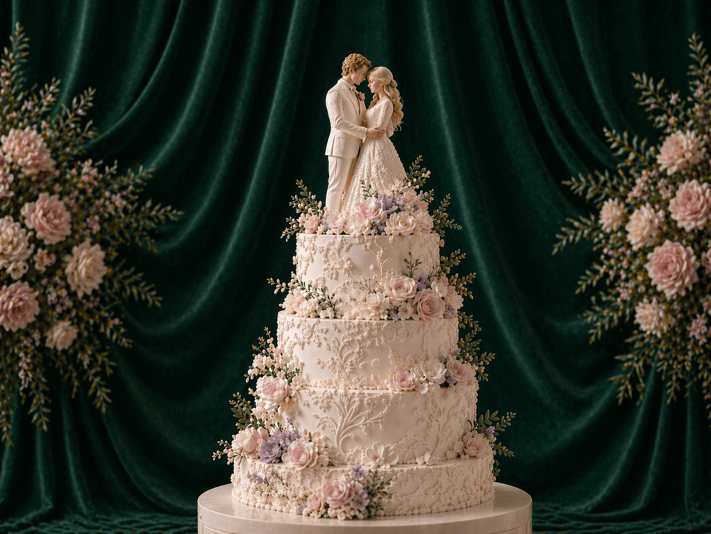 A bride with a tiara and veil. A groom with a waistcoat and cravat. Are you having your own royal wedding? Then take a look at these castle cake toppers. They will be the finishing touch for your regal wedding cake.
