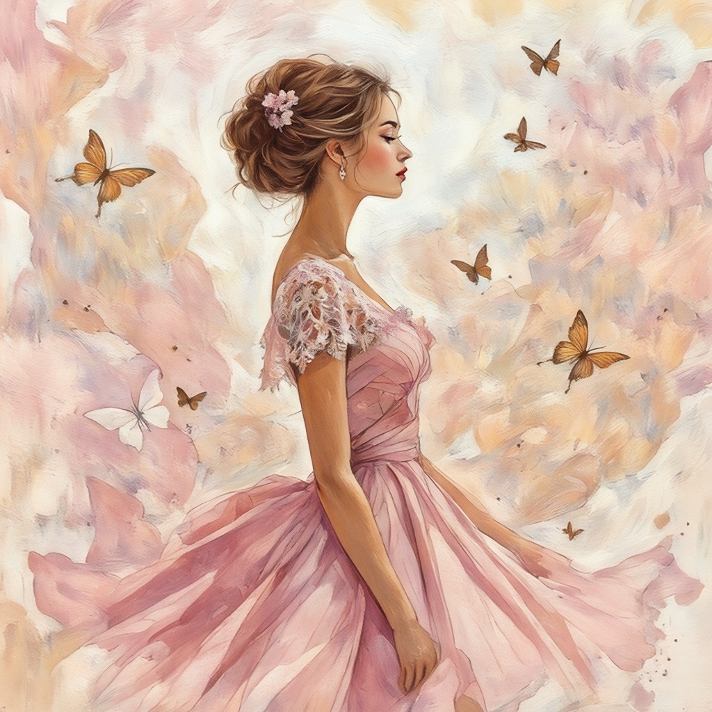 Chiffon Dress, with Flutter Sleeves & a Lace-Covered Skirt, in Many Soft Colors