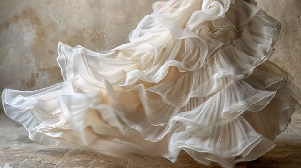 Organza & Tulle Ruffled Skirt with Train, Champagne