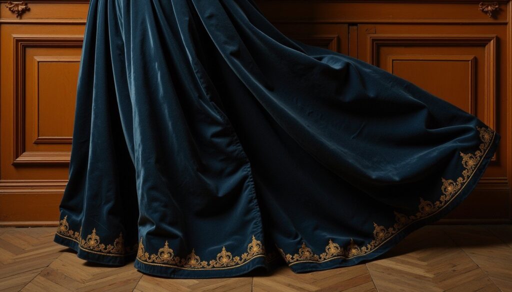 Long Velvet A-Line Skirt with a Vintage Pattern