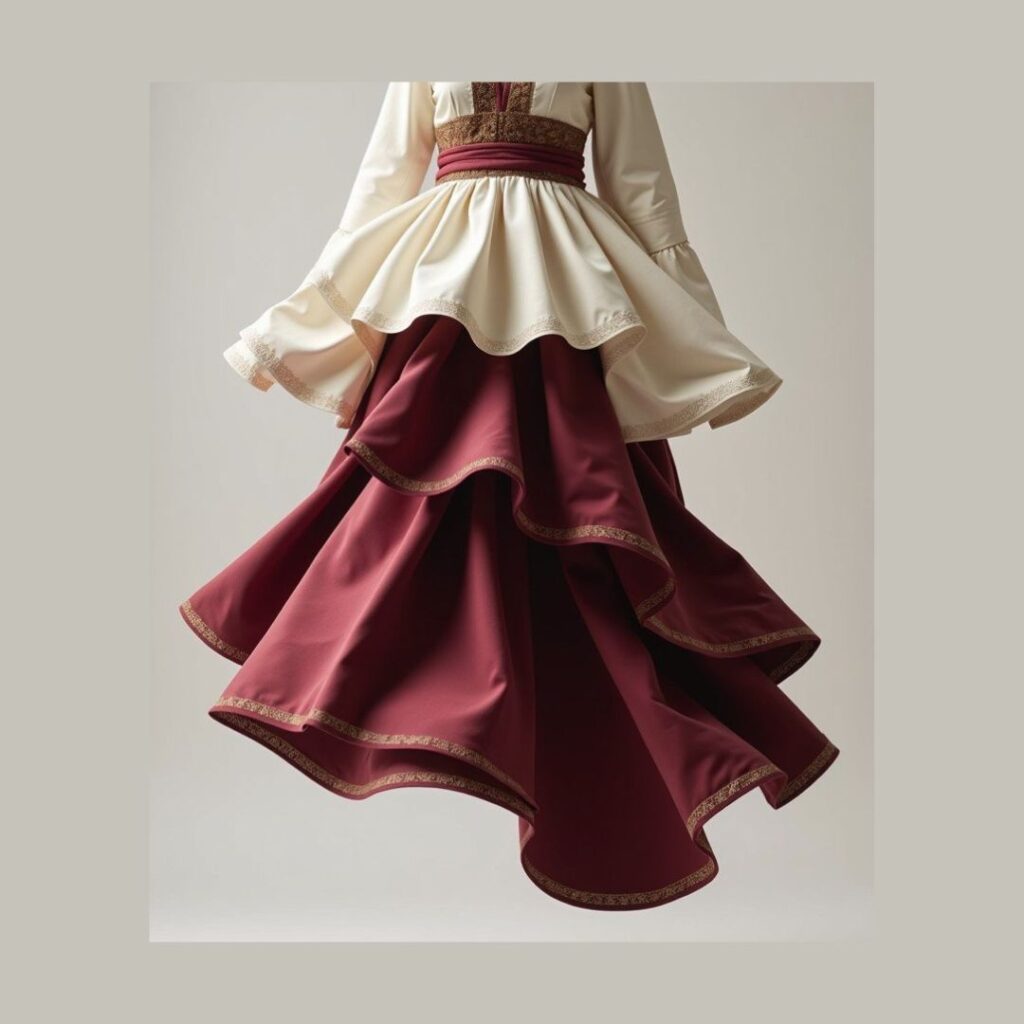 Chiffon Handkerchief Skirt with a Ruffled, Scoop-Neck Bodice, in Many Colors